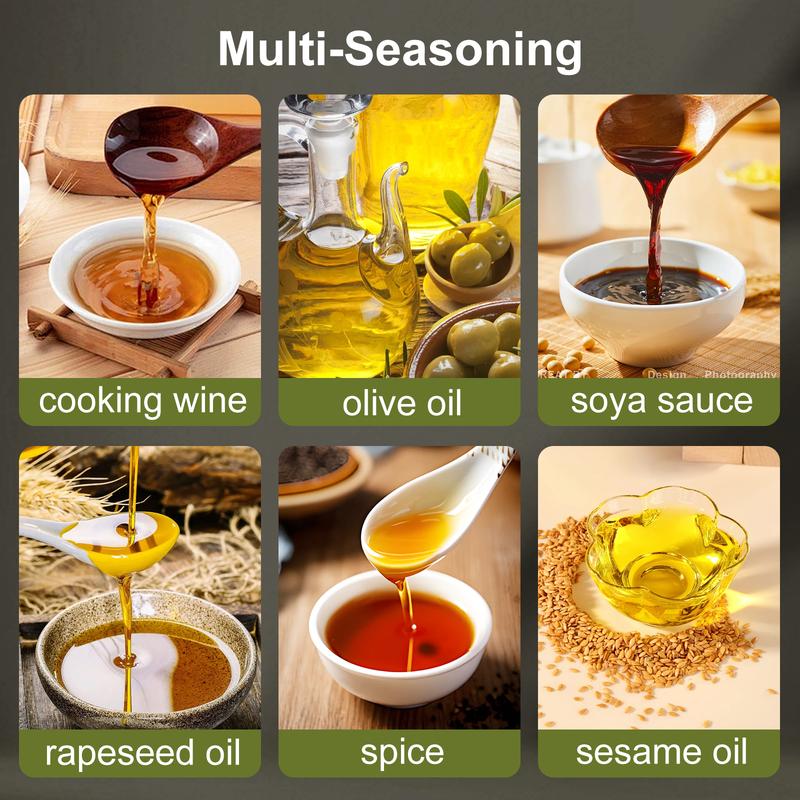 Dual Dispensing Convenience: This oil bottles for kitchen offers both pouring and spraying capabilities, allowing you to switch between the two with ease. It's a space-efficient solution that keeps your kitchen clean and organized.