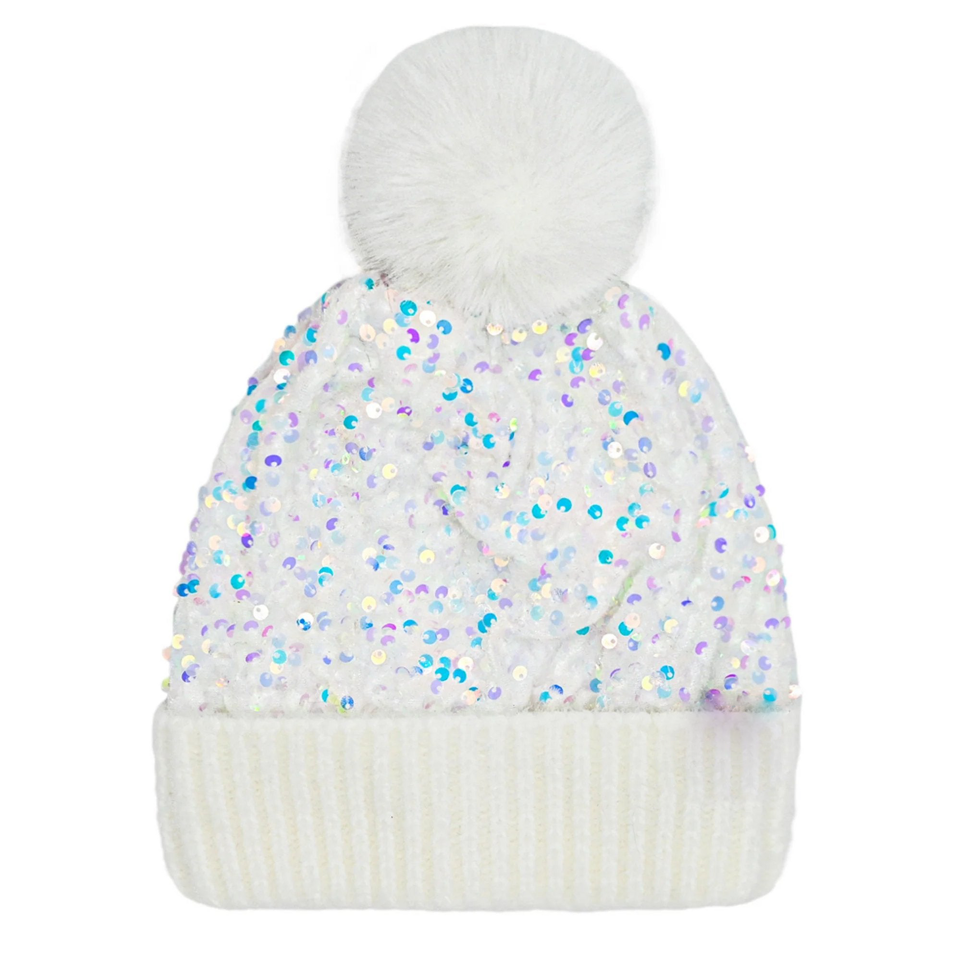Festive Sequins & Plush Fur Pom Covered in eye-catching, high-shine sequins and topped with a soft, luxurious fur pom, this beanie adds a touch of elegance and fun to any outfit. Perfect for holiday parties, Christmas markets, or a night out!